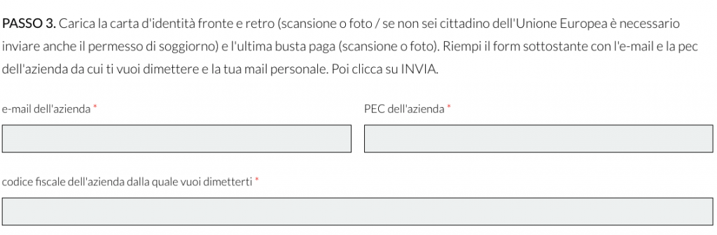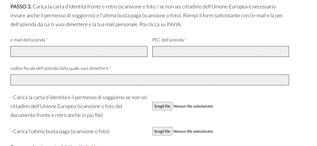 In questo caso la procedura prevede dei documenti aggiuntivi, che nella pratica di dimissioni online ordinaria non sono necessari.