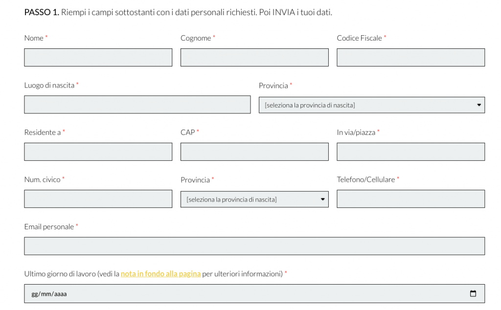 - Inserire le informazioni personali e l’ultimo giorno di lavoro;