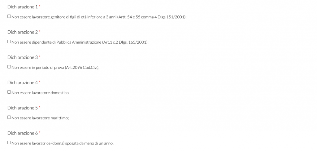 2. Confermare di non far parte di alcune categorie particolari di lavoratori;